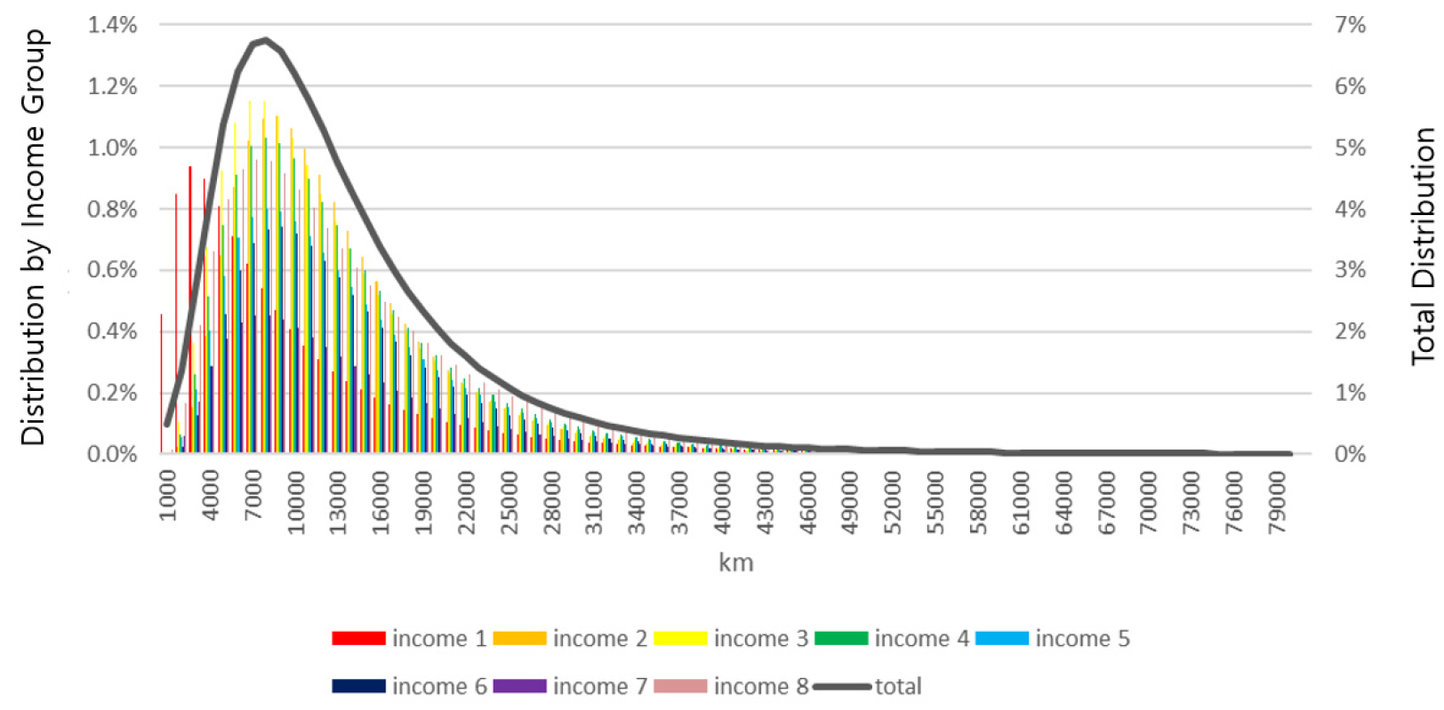 - The transport sector plays a dual role—it's essential for economic activity and human well-being, but it is also a major source of greenhouse gas emissions. While electric vehicles are promoted as a key solution for reducing emissions in road transport, their higher upfront costs pose challenges, particularly for lower-income households who face higher implicit discount rates in their purchasing decisions. This study enhances existing bottom-up linear programming transport models by incorporating consumer income characteristics into the analysis of passenger car choices from 2019 to 2050. The study divided driving distances into eight categories based on household income levels and applied income-specific implicit discount rates. It also factored in how gross domestic product growth affects household income levels over time—an aspect previously overlooked. The model results reveal significant differences in electric vehicle adoption patterns across income groups. When income characteristics and varying discount rates are considered, low-income households show lower electric vehicle adoption rates compared to previous model predictions, while high-income households exhibit higher adoption rates. These disparities become even more pronounced under carbon tax policy scenarios. The study concludes that for transport sector carbon neutrality policies to be effective, they must account for various factors influencing vehicle purchase decisions, especially income-related constraints. It specifically recommends developing differentiated subsidy policies for different income groups to promote more equitable adoption of electric vehicles across all economic segments of society.